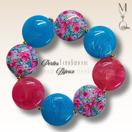 Fourniture du kit: Palets 22mm en acrylique, rondelles 4mm en plaqué or 18K, fil élastique