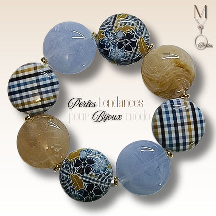 Fourniture du kit: Palets 22mm en acrylique, rondelles 4mm en plaqué or 18K, fil élastique