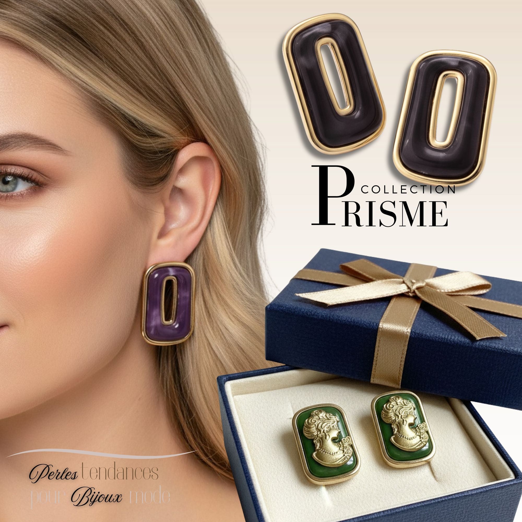 👍🏻Cabochons trapèzes, formes légèrement arrondis, pour boucles d'oreilles PRISME, en acrylique de haute qualité, couleurs résistantes aux UV, et rayures.